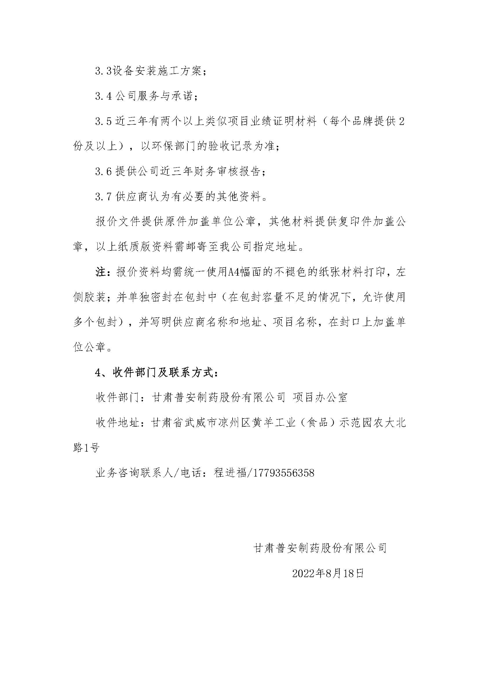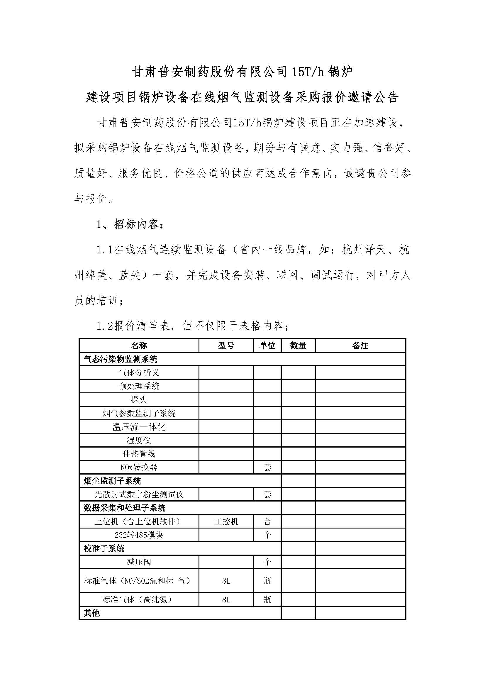 甘肅普安制藥股份有限公司15T/h鍋爐建設(shè)項目鍋爐設(shè)備在線煙氣監(jiān)測設(shè)備采購報價邀請公告