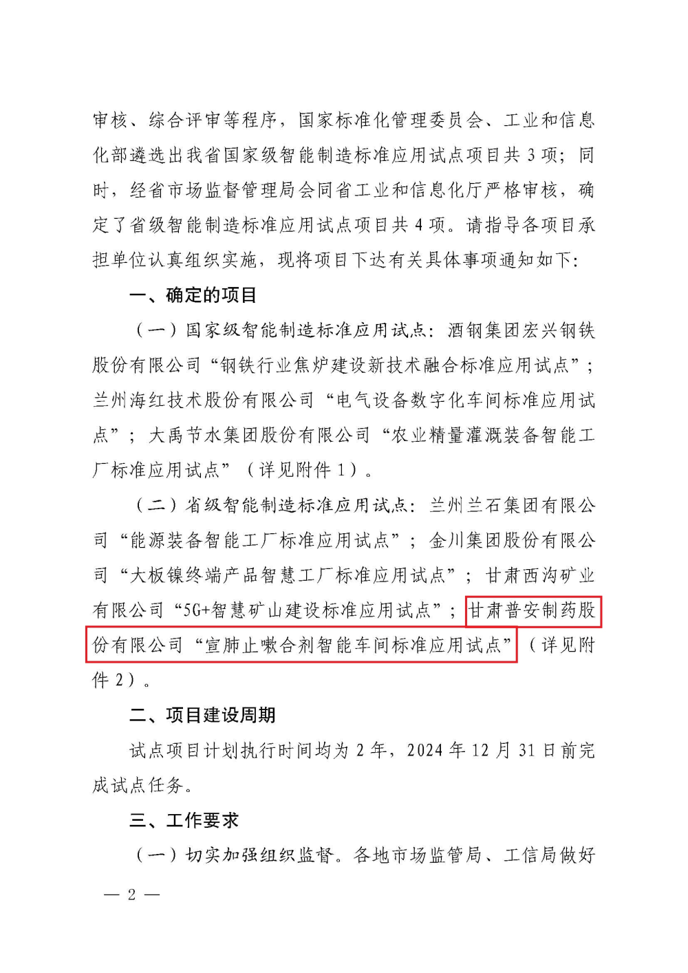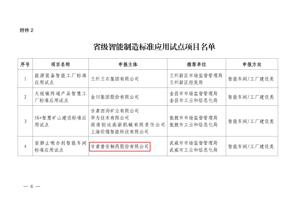 “三抓三促”踐行中 ᅵ 【喜報】甘肅藥業(yè)集團普安制藥入選省級智能制造標準應用試點項目名單