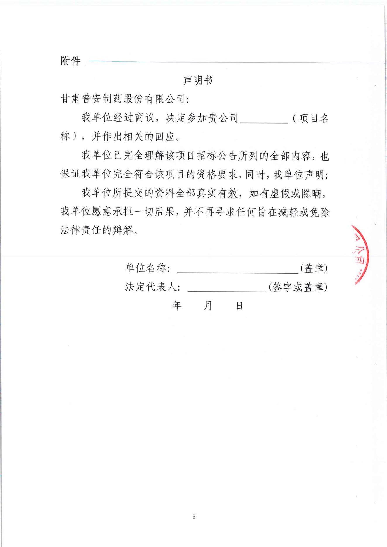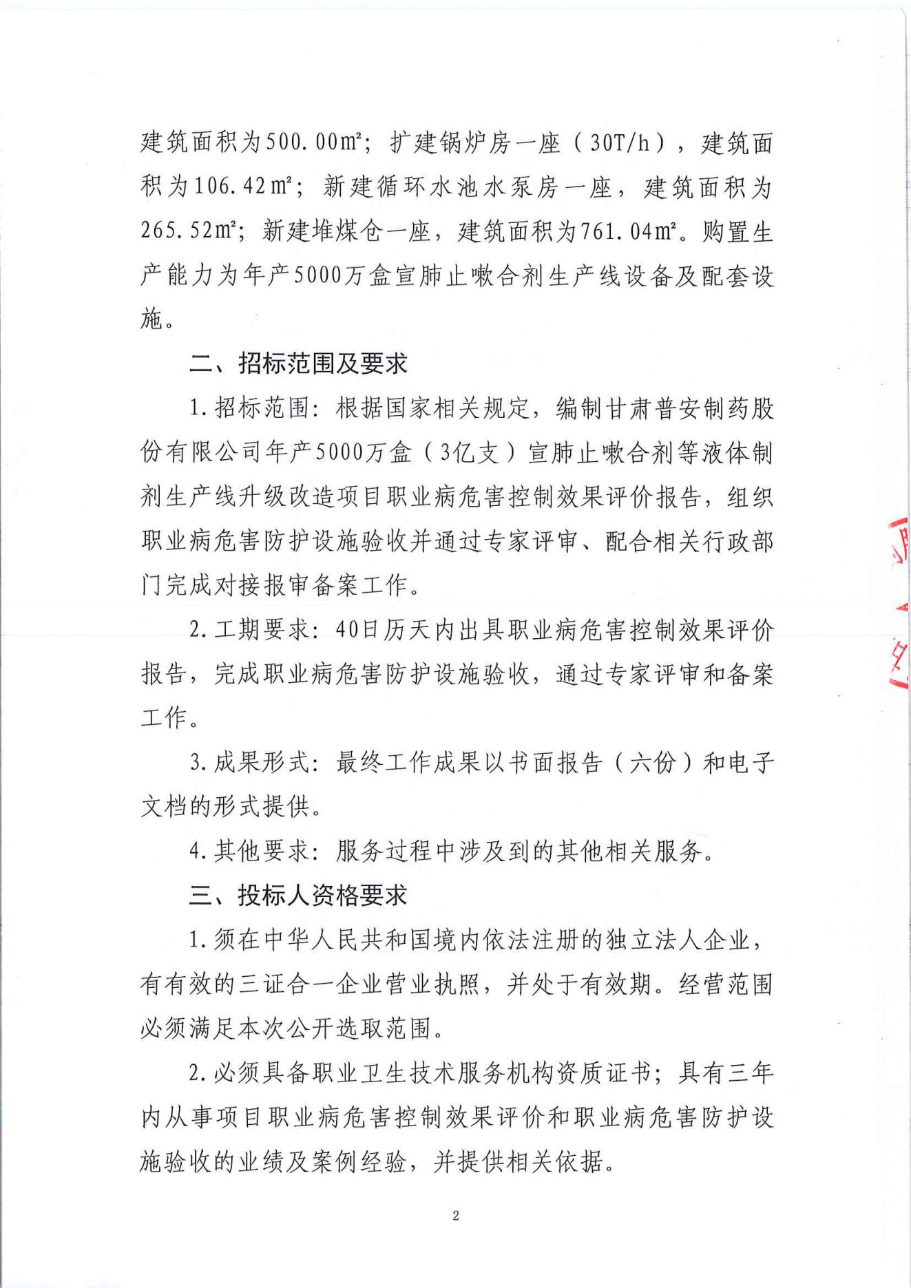 甘肅普安制藥股份有限公司年產5000萬盒(3億支)宣肺止嗽合劑等液體制劑生產線升級改造項目職業病危害防護設施驗收服務招標公告