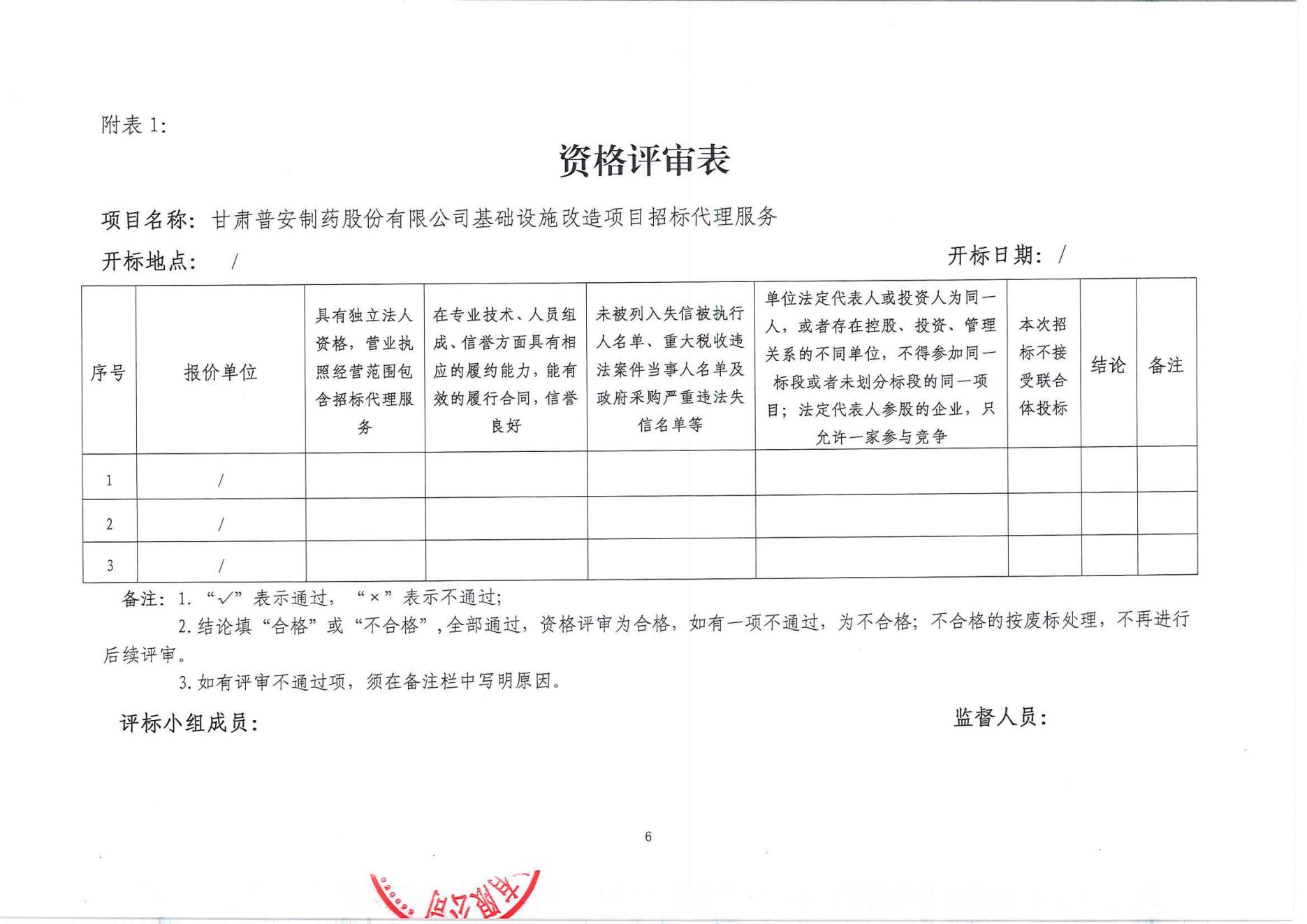 甘肅普安制藥股份有限公司基礎(chǔ)設(shè)施改造項(xiàng)目招標(biāo)代理招標(biāo)公告