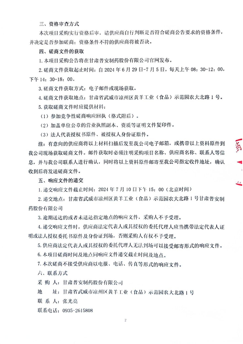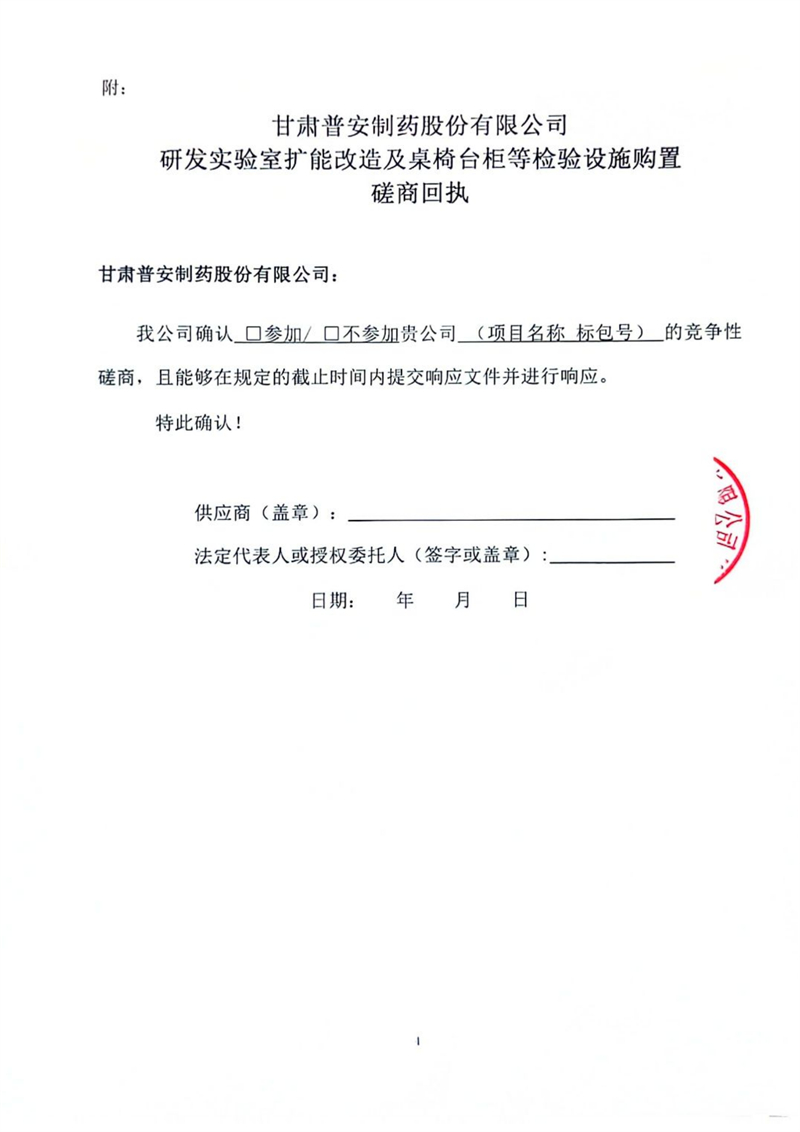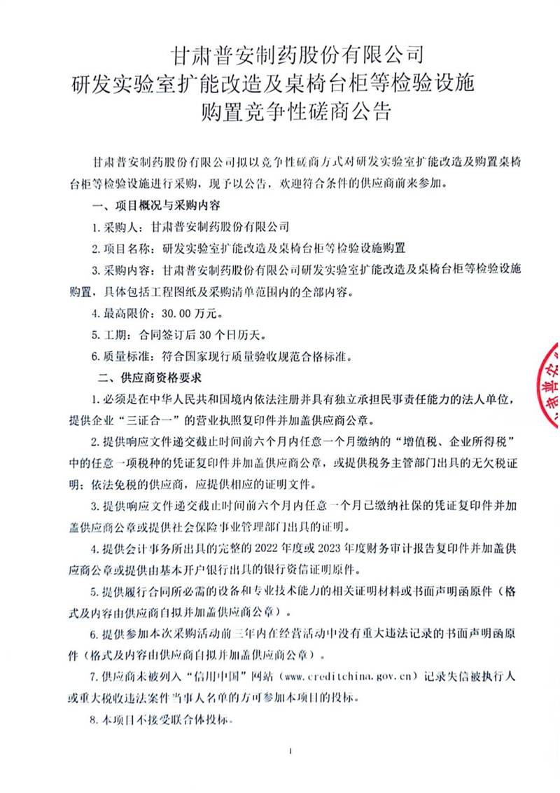 甘肅普安制藥股份有限公司研發(fā)實驗室擴能改造及桌椅臺柜等檢驗設(shè)施購置競爭性磋商公告