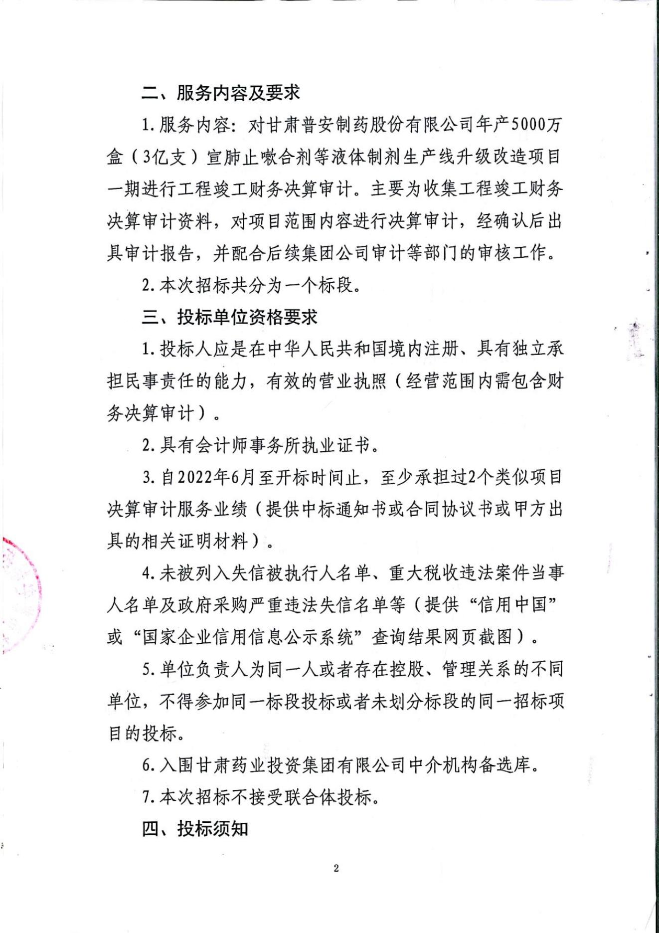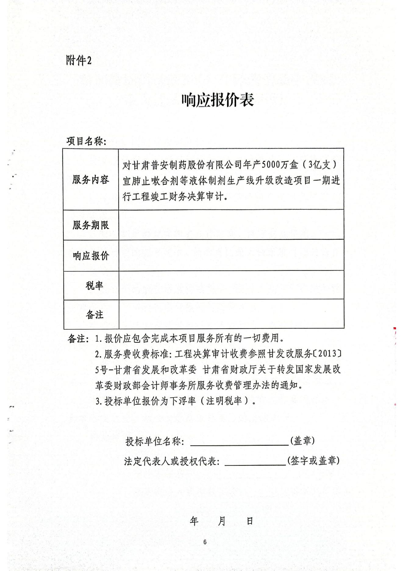 普安制藥年產5000萬盒宣肺止嗽合劑等液體制劑生產線升級改造項目一期竣工決算審計服務招標公告