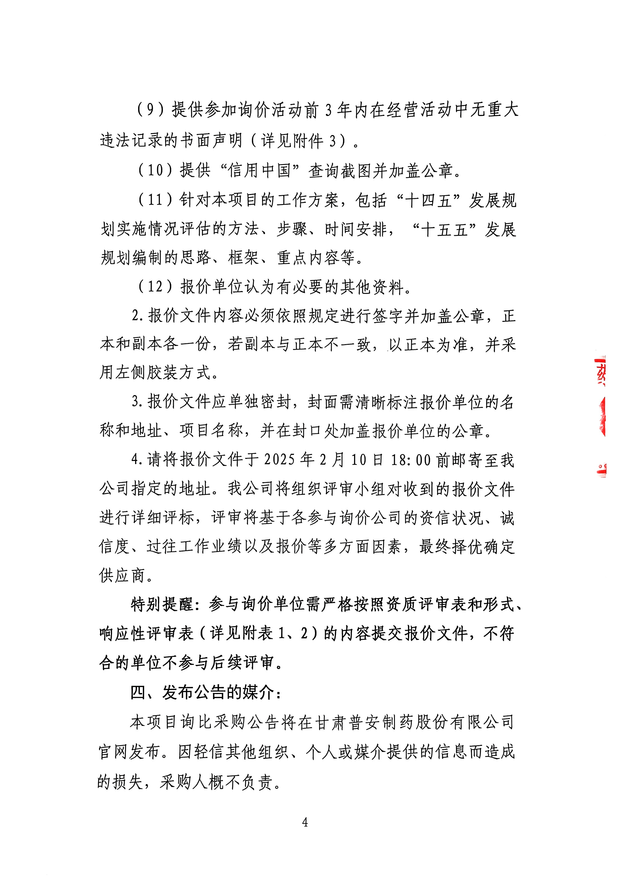 甘肅普安制藥股份有限公司“十五五”發展規劃編制及“十四五”發展規劃實施情況評估采購項目詢價公告