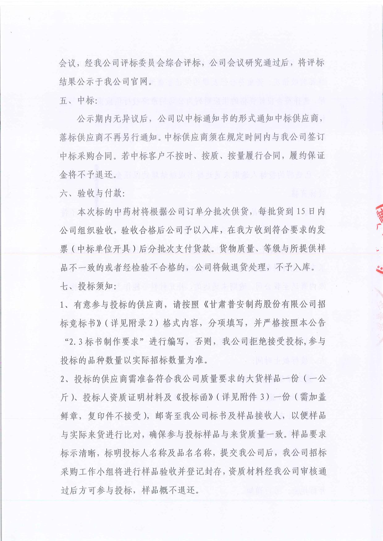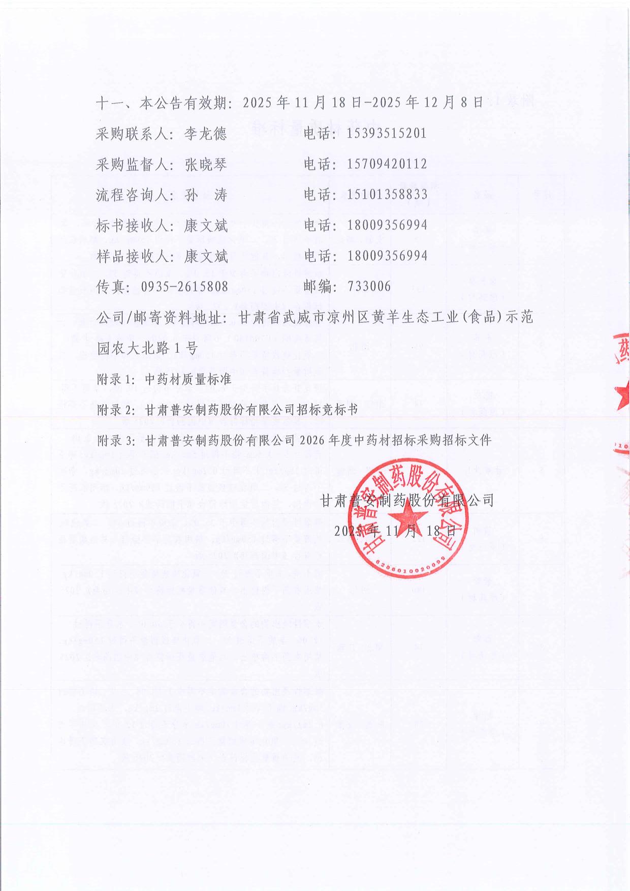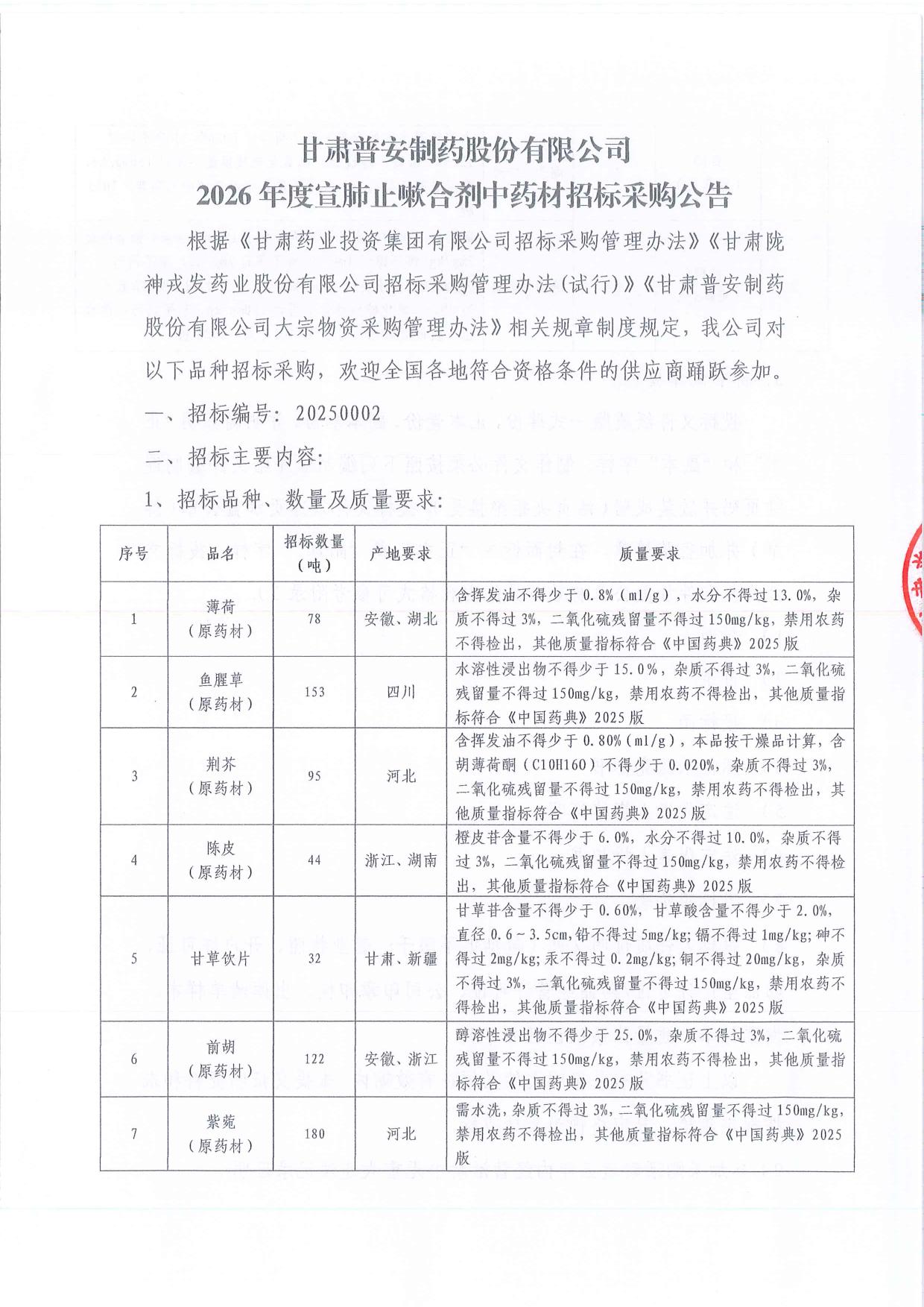 普安制藥2026年宣肺止嗽合劑中藥材招標公告