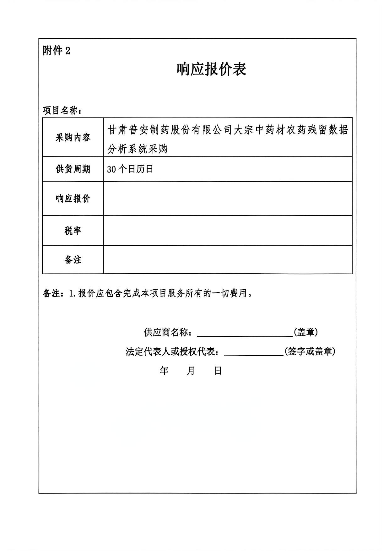甘肅普安制藥股份有限公司大宗中藥材農藥殘留數據分析系統采購競爭性磋商公告