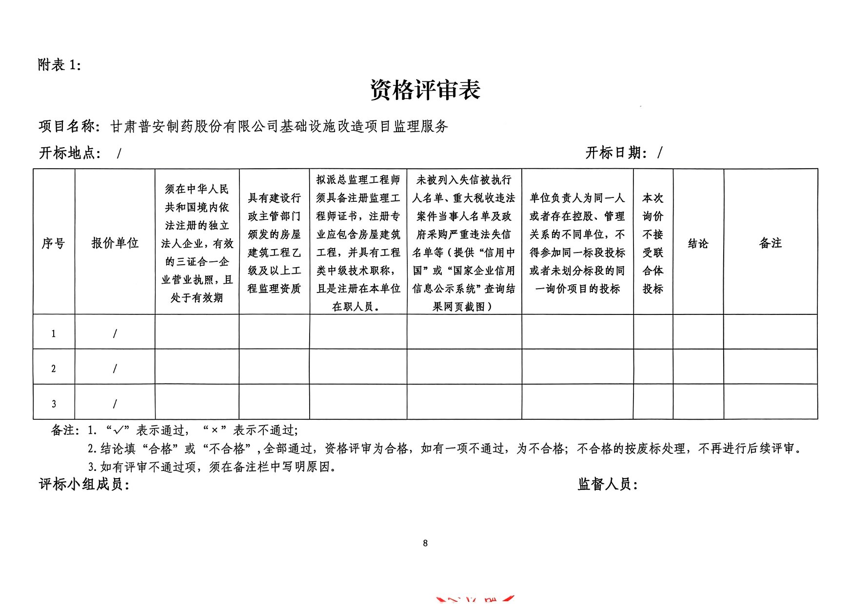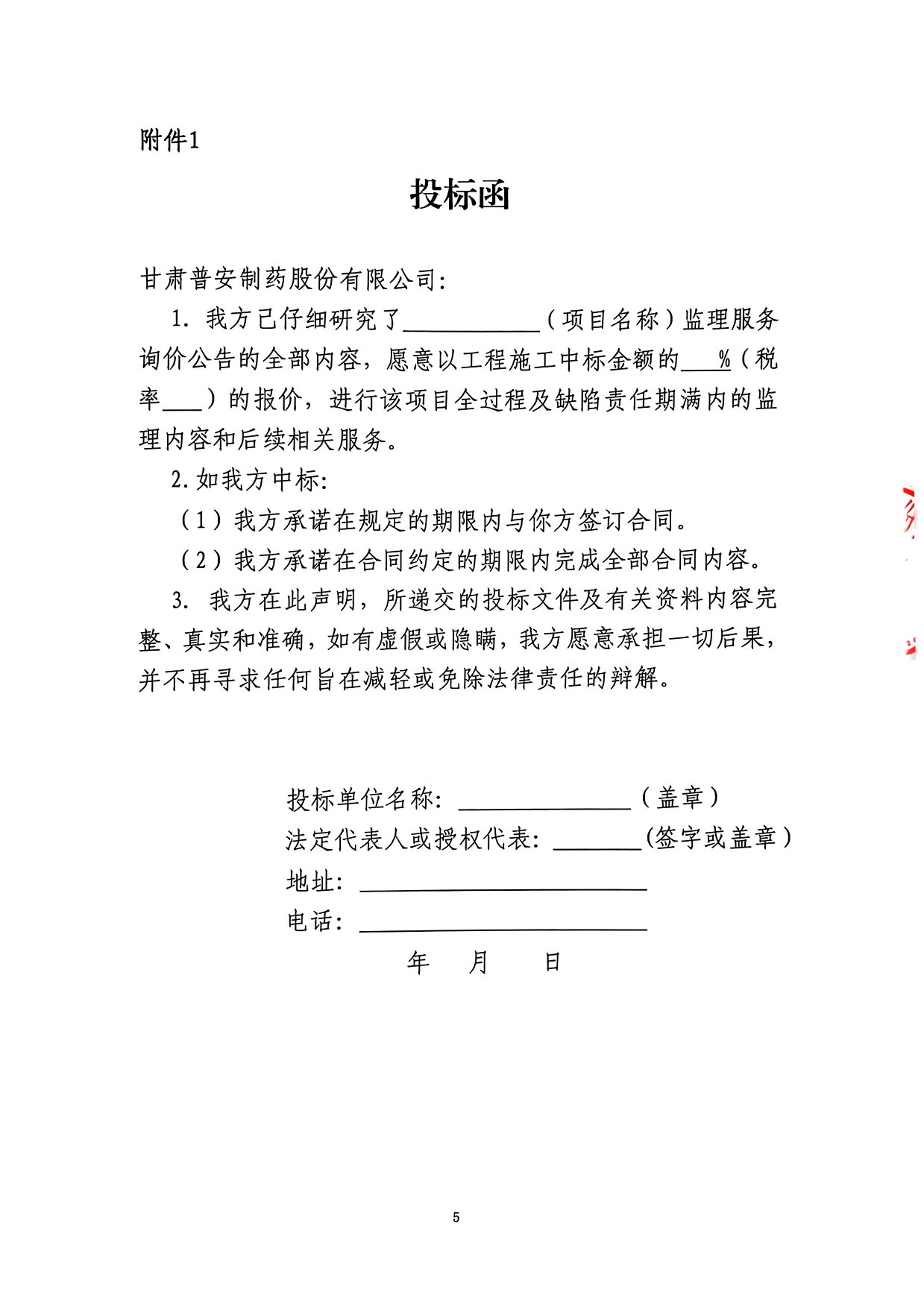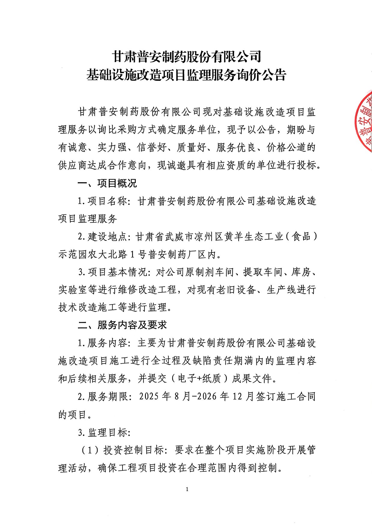 甘肅普安制藥股份有限公司 基礎設施改造項目監理服務詢價公告
