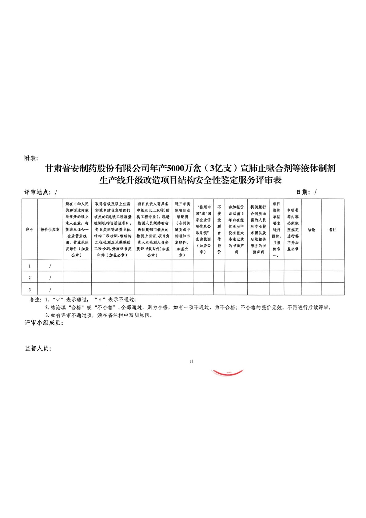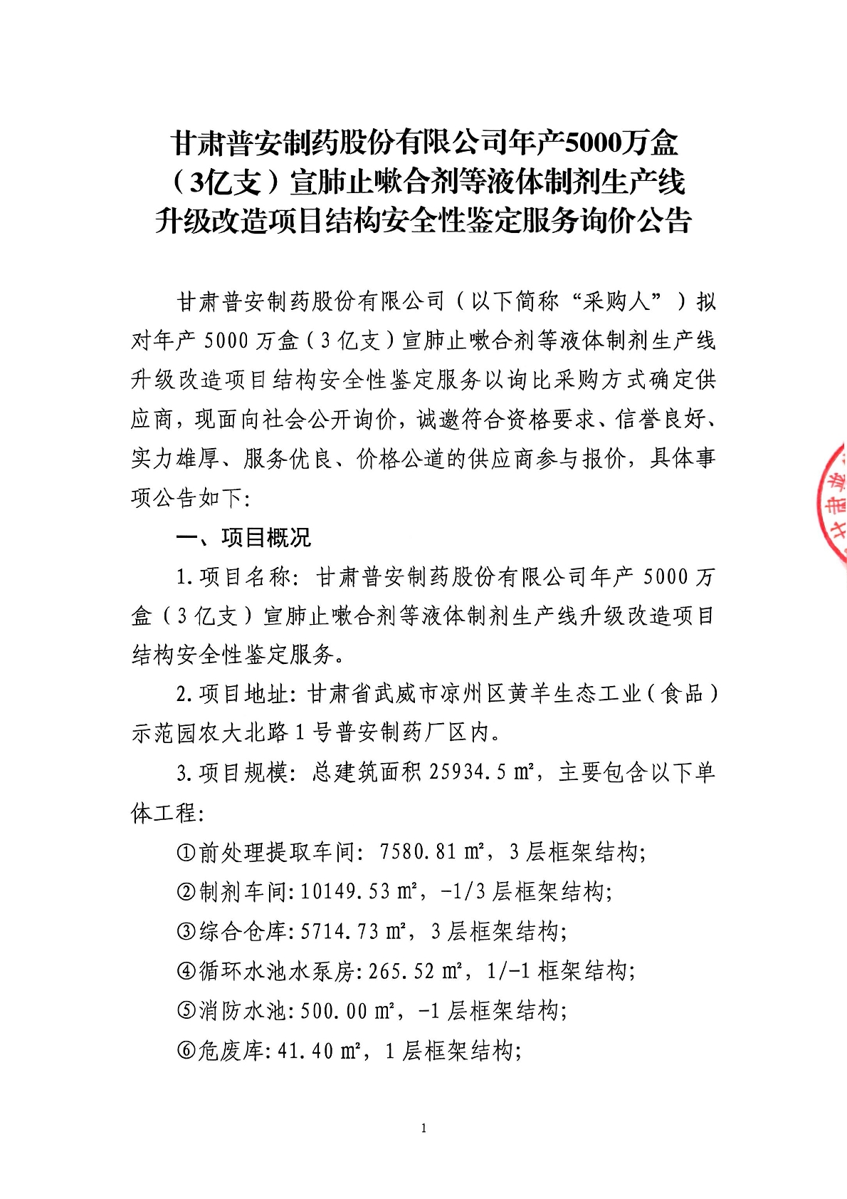 甘肅普安制藥股份有限公司年產(chǎn)5000萬盒(3億支)宣肺止嗽合劑等液體制劑生產(chǎn)線升級改造項(xiàng)目結(jié)構(gòu)安全性鑒定服務(wù)詢價公告